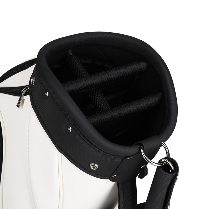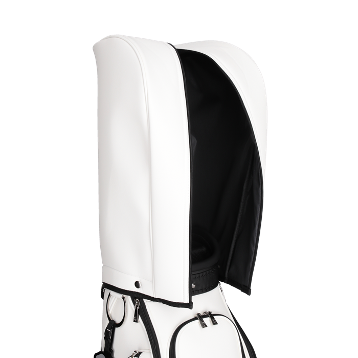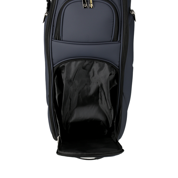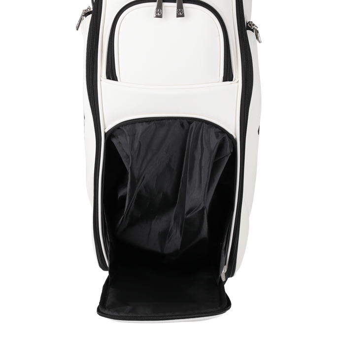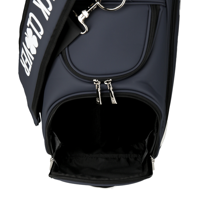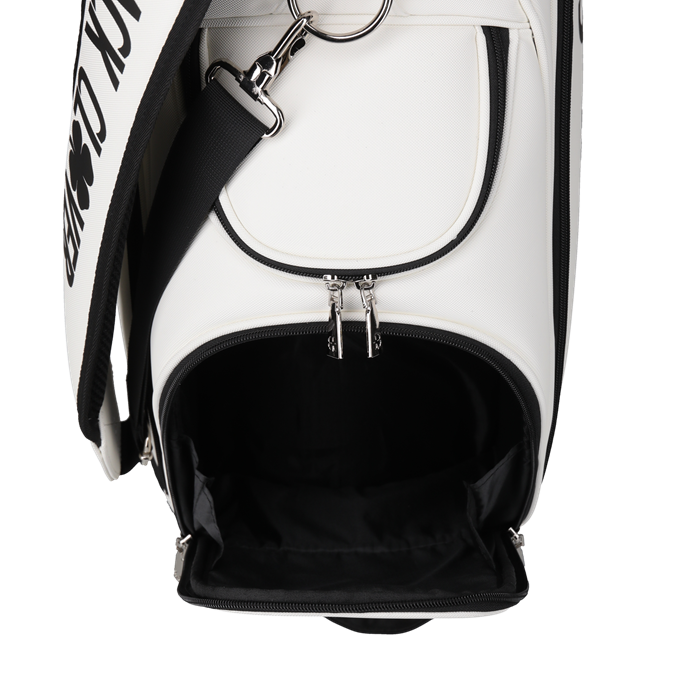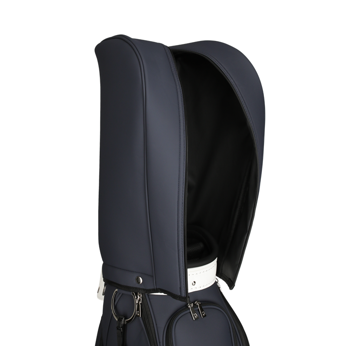 柔らかさと丈夫さを併せ持つエンボスPVC素材を使用した上質なキャディーバッグです。人気のダークネイビーにホワイトのブランドロゴをあしらったカラーリングで男女問わずお使いいただけます。