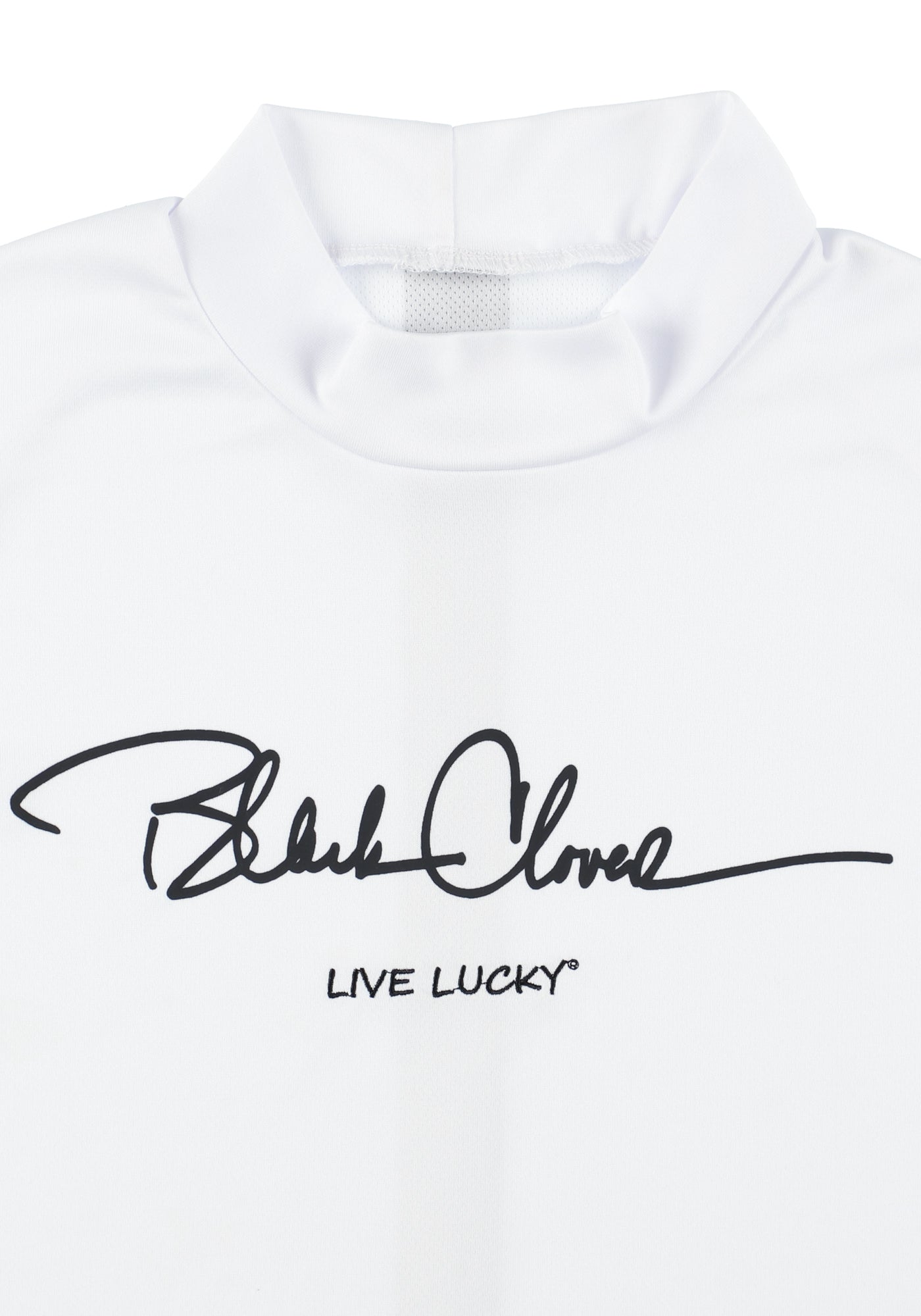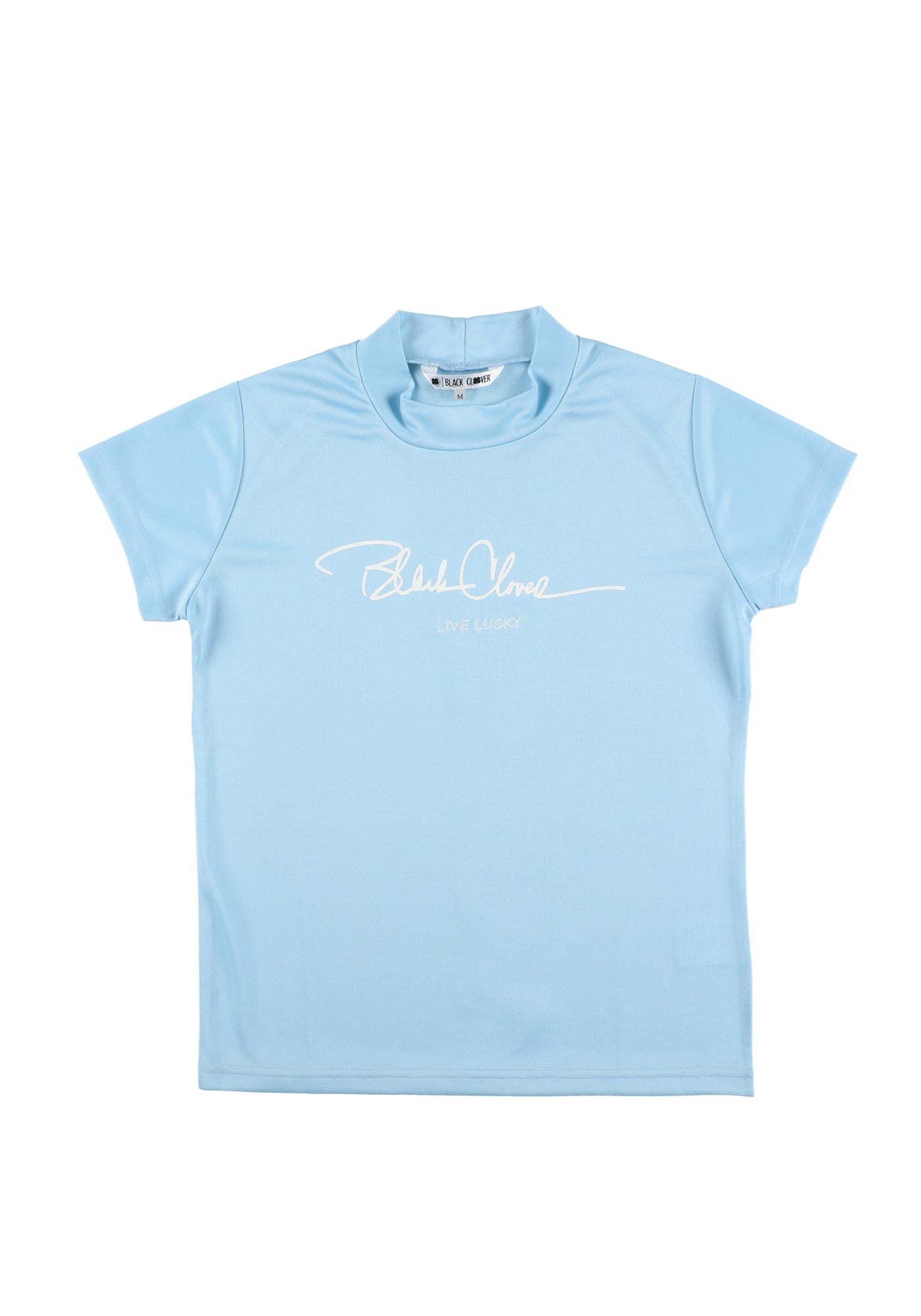 レディース モックネックTシャツ 吸水速乾素材使用。肌触りも柔らかく、汗をかいてもまとわり付きづらい素材感なので、快適にプレーが出来ます。シンプルなデザインながら背面部にトレンドラインアイコンを配備されたハイネックポロ。