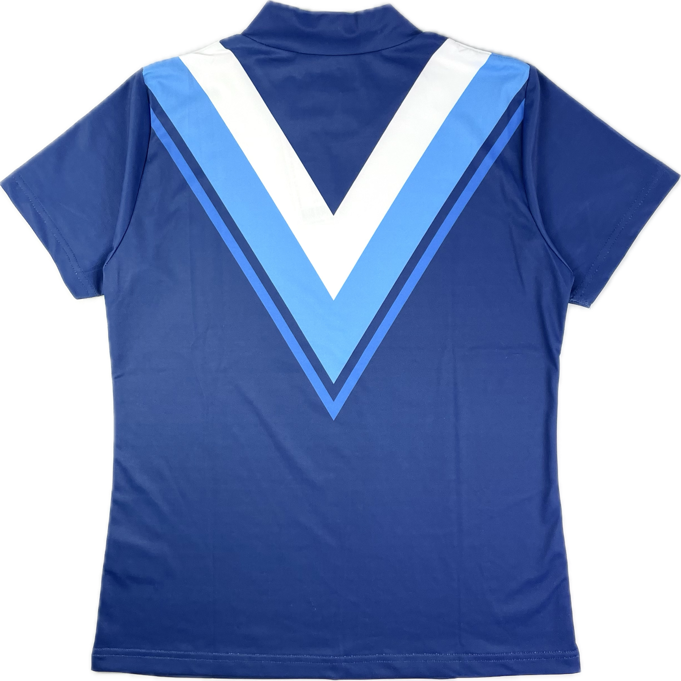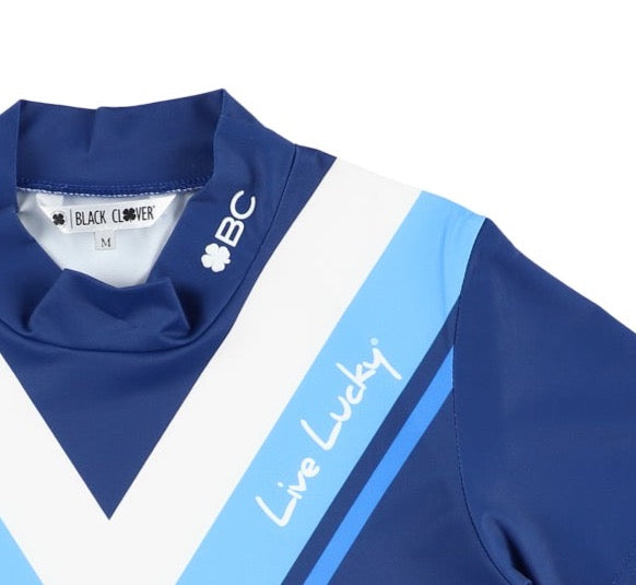 吸水速乾素材使用。ストレッチ性の高い素材の為、快適なスイングが期待できます。前部に配備したVパターンが、印象的なハイネックポロ。ニューレトロとも言える今年らしいデザイン。