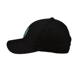 落ち着いたブラックハットにティールカラーのラバーパッチがアクセントを加えます。コーディネートを選ばずヘビーユースできるデザインで、スポーツだけでなくデイリーユースにもぴったりなキャップです。