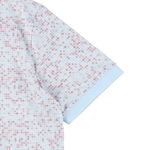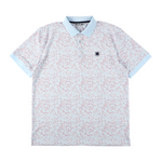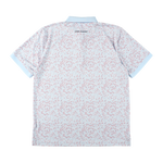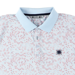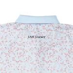 パステルカラーのダイヤ柄のプリントのダイヤモンドスカイ。スーパーソフト仕様で伸縮性が高く、速乾、発汗対応でさらっとした感触が楽しめます。左の胸元にクローバーマークのワンポイント。イージーケア。88% ポリエステル 12% ポリウレタン。S/M/Lの3サイズ展開。