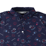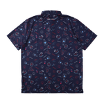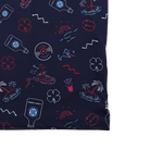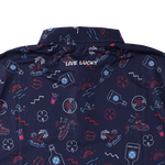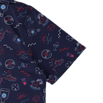 クローバー、やしの木、お酒のボトル、レコード、楽器など、海辺でまったり過ごすシーンを彷彿とさせるグッドバイブス。伸縮性が高く、さらっとした感触が楽しめます。イージーケア。86% ポリエステル 14% ポリウレタン。S/M/Lの3サイズ展開。