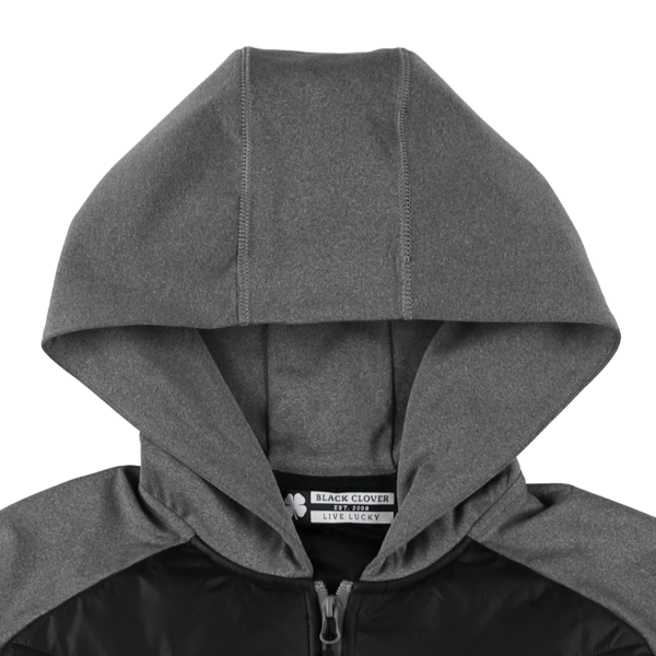 ジャクソン・キルト・ジャケットは快適さと機能性を兼ね備えたスタイリッシュなアウターです。ボディはキルティング、フードとアームは伸縮性の高いスパンデックスで保温性もあります。ジッパーにあしらわれたブラック・クローバーのロゴが個性的なアクセント。ワードローブの中でひときわ目立つアイテムになります。