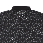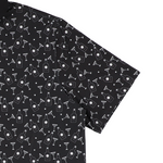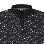 カクテルグラスやお酒のボトルがモチーフのリキッドラック。胸元中央の白いクローバーマークがおしゃれ。伸縮性が高く、速乾、発汗対応でさらっとした感触が楽しめます。イージーケア。91% ポリエステル 9% ポリウレタン。S/M/Lの3サイズ展開。