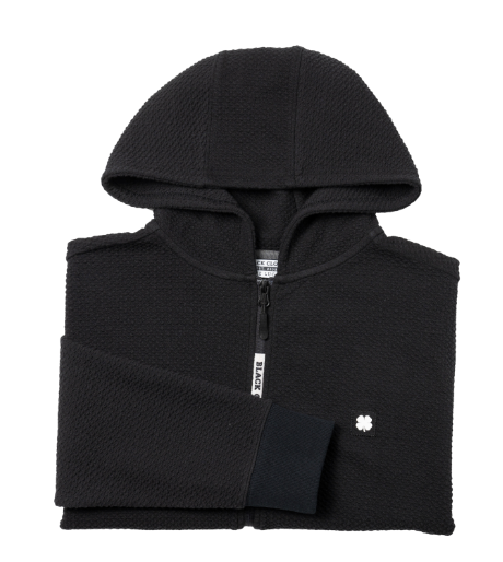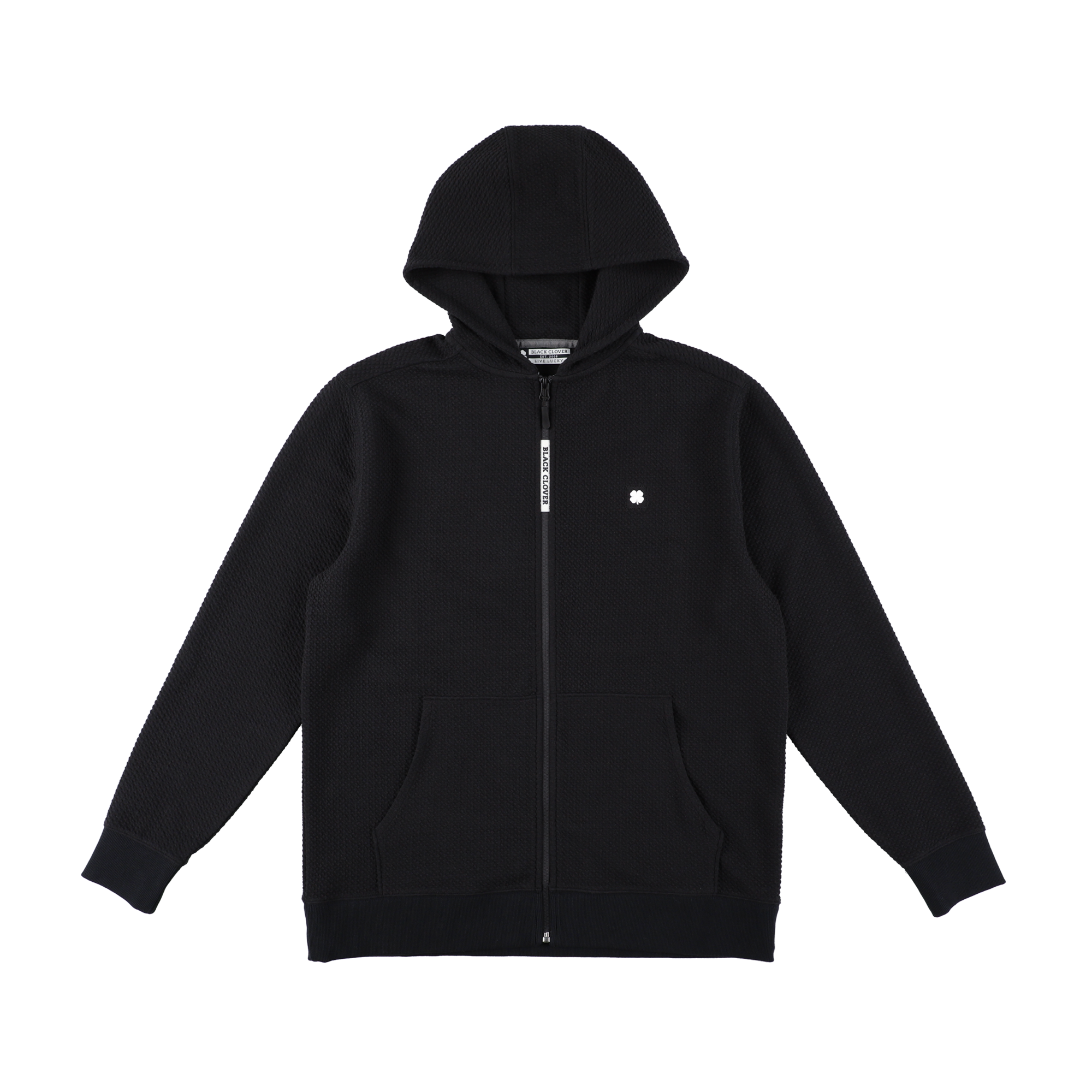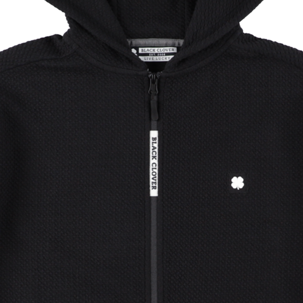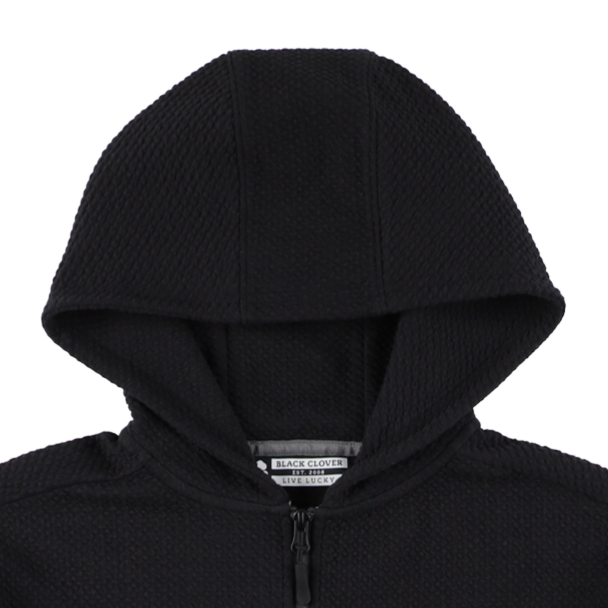 コットン混紡の質感とスタイル性の高いジップアップ パーカー、モナークジャケット。ジッパーに Black Clover のロゴ、左胸にクローバーのエンブレムが付いたこのジャケットは、楽で快適に着用いただけるだけでなく、フロントポケット、形状維持技術、通気性を備え、スタイリッシュで機能的です。
