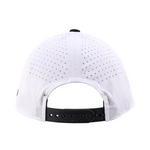 ホワイト×ブラックのゴルフスナップバックは、気温が上がる場面でも空気の流れを保つレーザーエッチングの通気孔を採用。さらに、構築的なクラウンと大胆なホワイトの3Dクローバーが、スポーティな印象を演出します。調整可能なスナップバック仕様でしっかりとフィットし、 effortless なスタイルを叶える理想的なゴルフキャップです。
