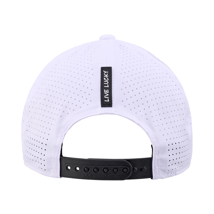 キャップ全体に施されたパンチング加工により、蒸れを軽減し長時間の着用でも快適。内側はFlexfit® テクノロジーにより、快適な被り心地と安定したフィット感を実現。背面の「Live Lucky」タグとスナップバック仕様で、フィット感とデザイン性を両立しました。軽量で通気性に優れ、ゴルフはもちろんアクティブな日常にも最適なキャップです。