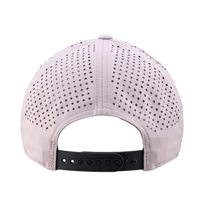 最大の特徴は、「通気性と軽快さを高めるレーザーエッチド・パーフ加工」。後頭部全体に施された精密なレーザーパンチングが、プレー中の熱やムレを効率よく逃がし、暑い日でも快適なかぶり心地をキープします。長時間のラウンドでもストレスを感じにくく、集中力をサポートします。