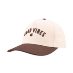 フロントの「GOOD VIBES」刺繍が印象的な、遊び心あふれるキャップ。