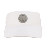 エッチング加工のクローバーマークが印象的な「シャープ バイザー」。Flexfit®110 テクノロジーを使用し、吸湿発散性と速乾性に優れています。ヘッドバンド部分は柔らかくクッション性があり、安定したフィット感を実現。一日中快適に着用できます。