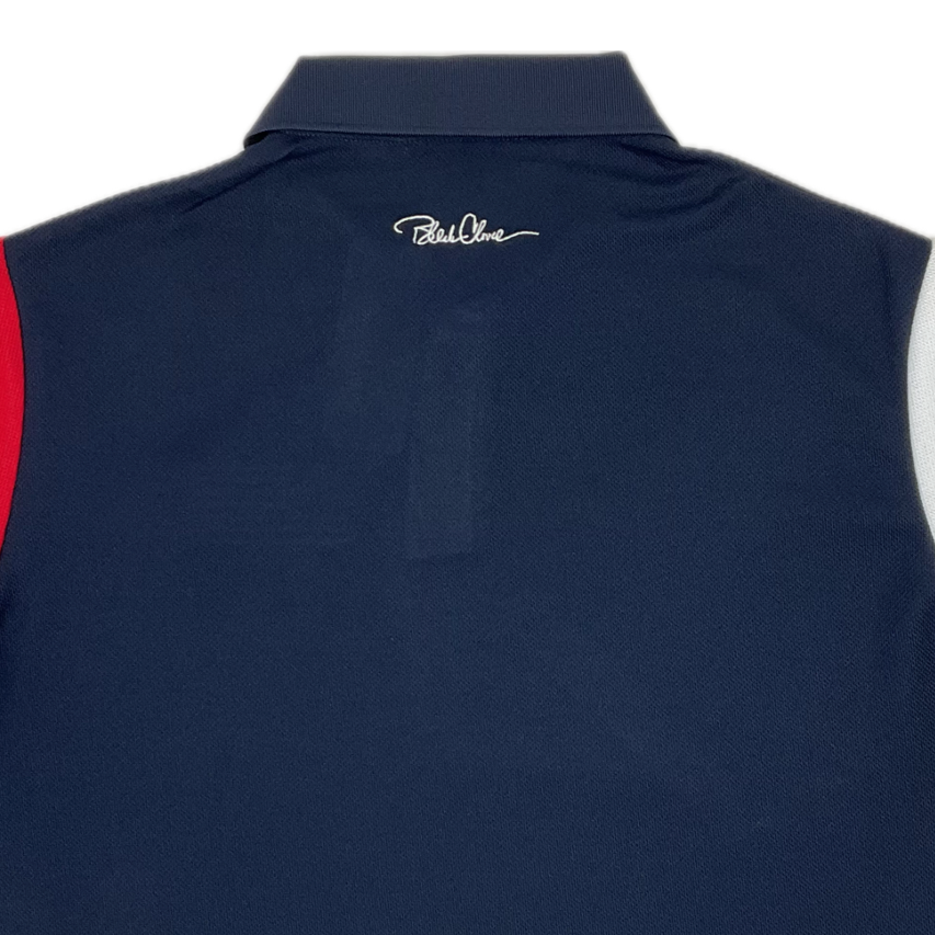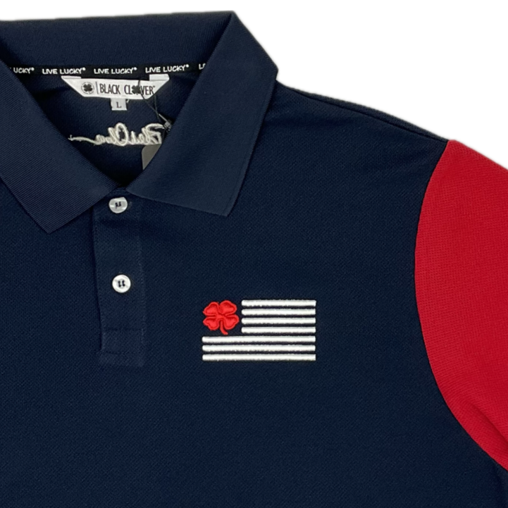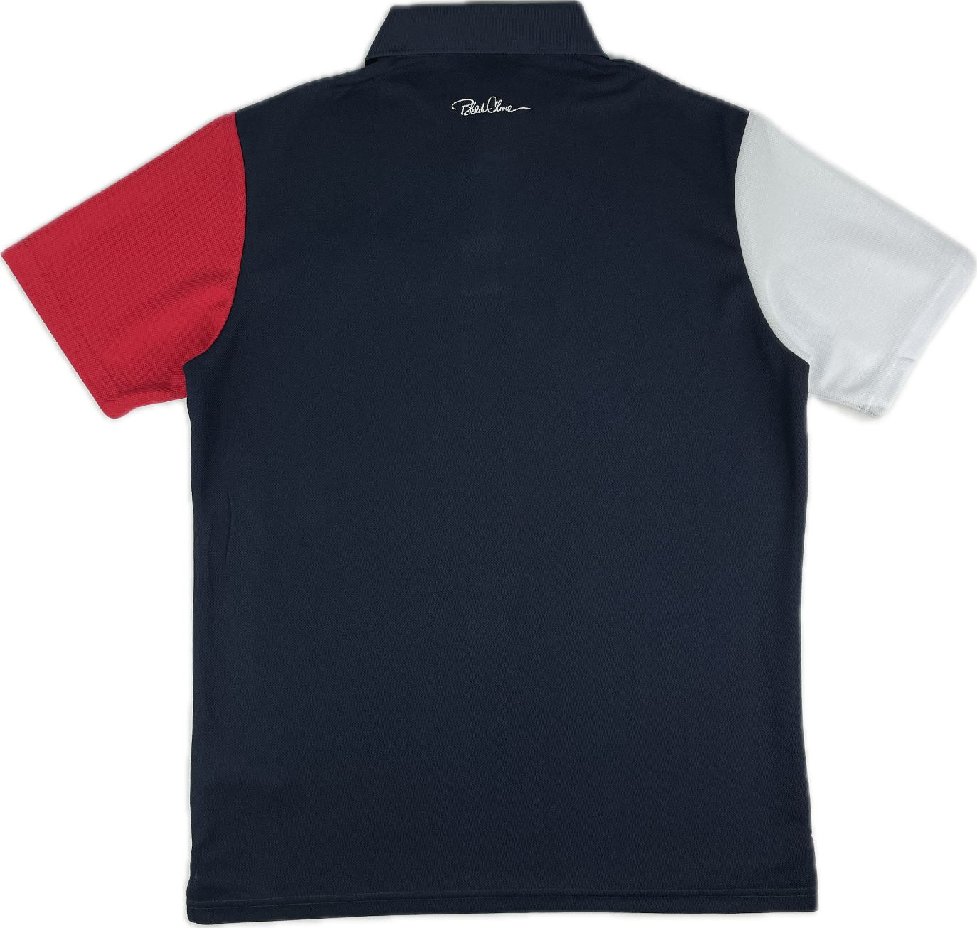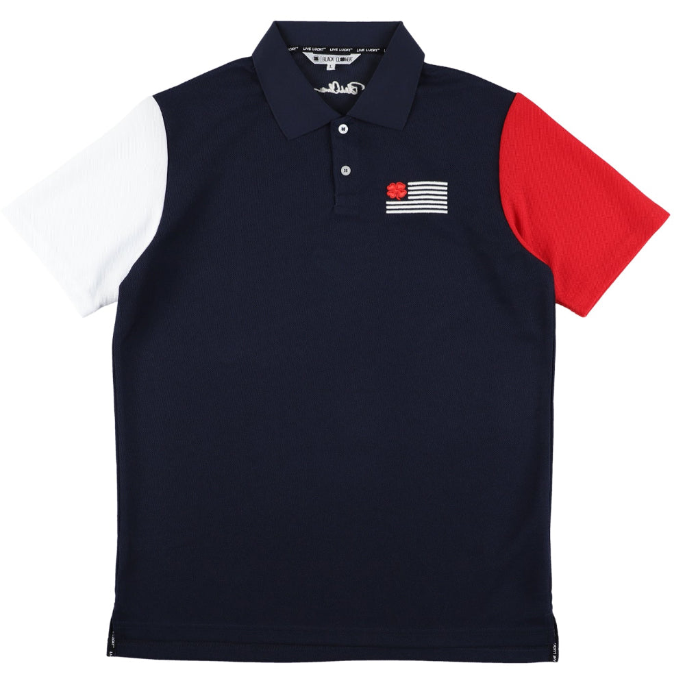 吸水速乾素材使用。BC USフラッグモチーフアイコンを3D刺繍で表現した一手間かけているカノコポロ。コットン調のポリエステルカノコ素材なので、OFF GREENでの着用も可能です。