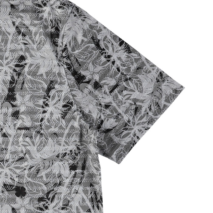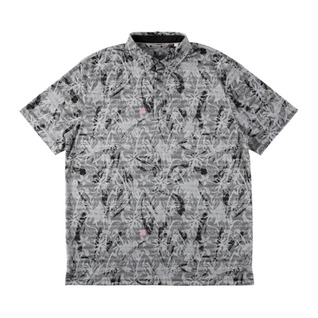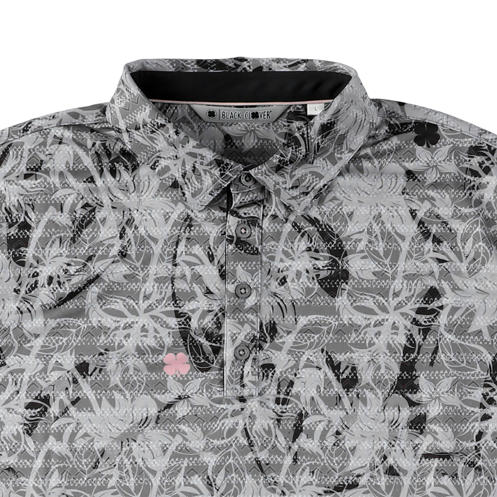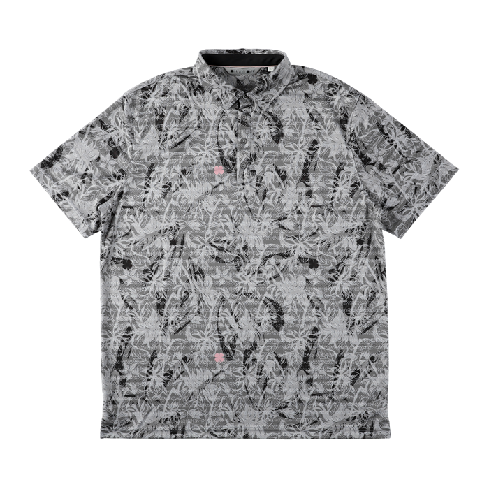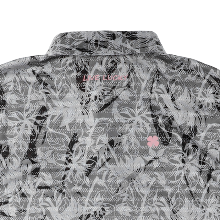 カリブ海をイメージするトロピカルなプリント柄のトロピカル レイヤー。着心地もよく伸縮性の高い素材です。速乾、発汗対応でさらっとした感触が続きます。ピンクのクローバーが表に裏に隠れています。イージーケア。100% ポリエステル。S/M/Lの3サイズ展開。