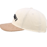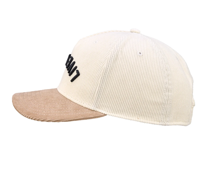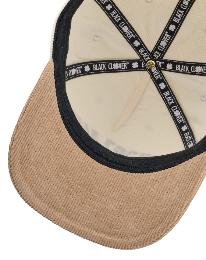 クラシックなコード素材に、クリームカラーのクラウンとライトブラウンのブリムを組み合わせた「CORD UPSIDE DOWN LUCK 1」。