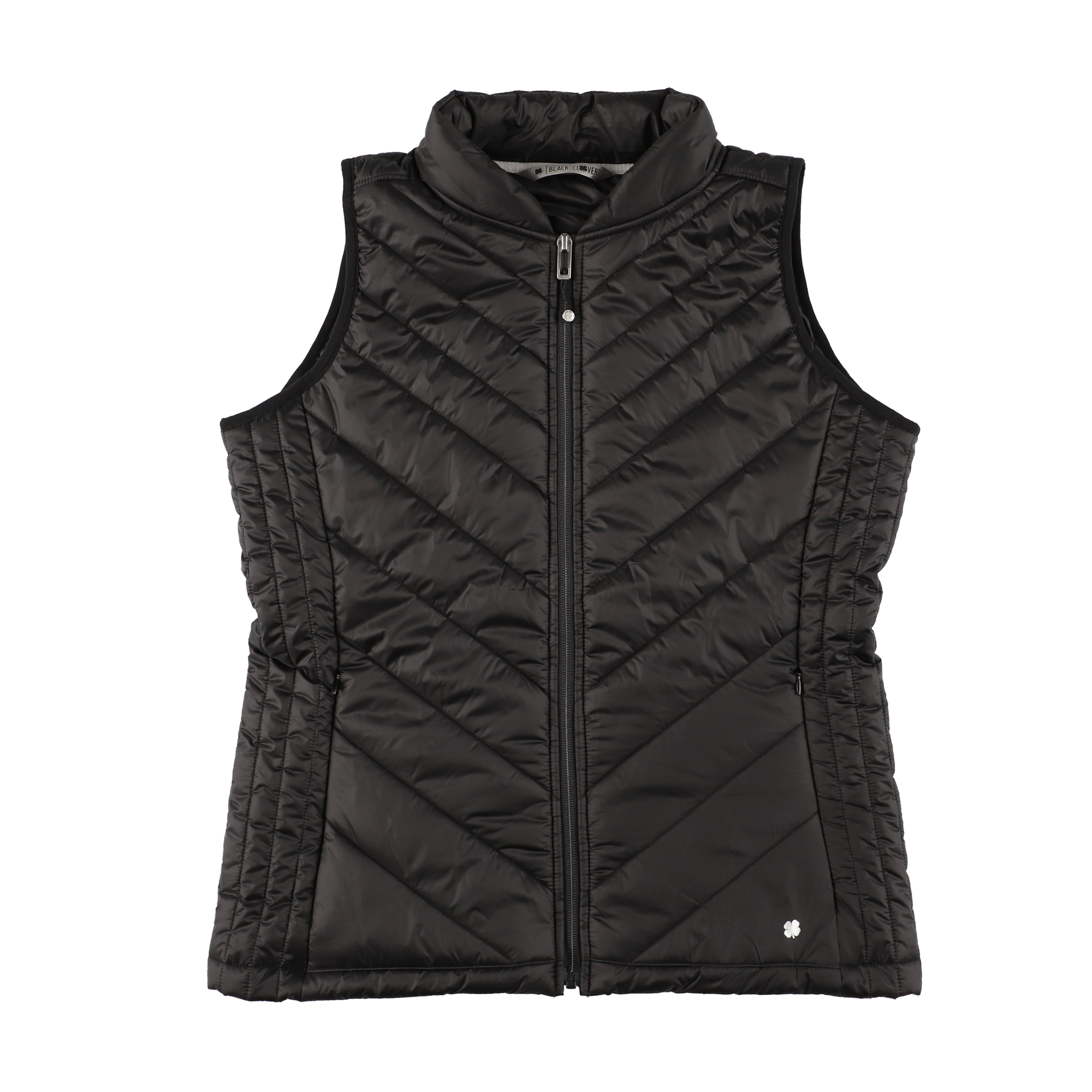 デミキルティッドベストは防風性、軽量性、快適性を備えています。フィットするデザインがシルエットを引き立て、内側にジッパー付きポケットが付いているので実用的です。風の強い日に重ね着するのにぴったりで、楽なスタイルです。