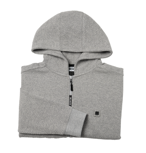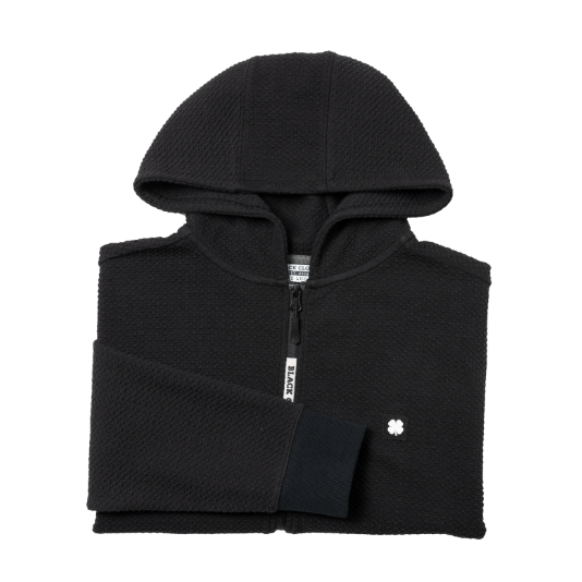 コットン混紡の質感とスタイル性の高いジップアップ パーカー、モナークジャケット。ジッパーに Black Clover のロゴ、左胸にクローバーのエンブレムが付いたこのジャケットは、楽で快適に着用いただけるだけでなく、フロントポケット、形状維持技術、通気性を備え、スタイリッシュで機能的です。