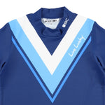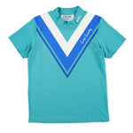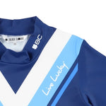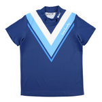 吸水速乾素材使用。ストレッチ性の高い素材の為、快適なスイングが期待できます。前部に配備したVパターンが、印象的なハイネックポロ。ニューレトロとも言える今年らしいデザイン。