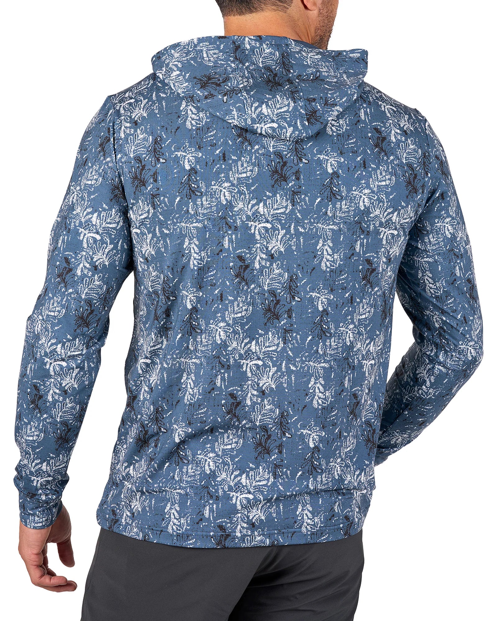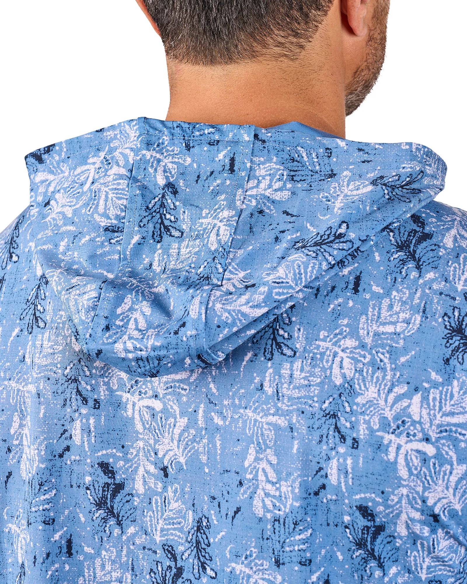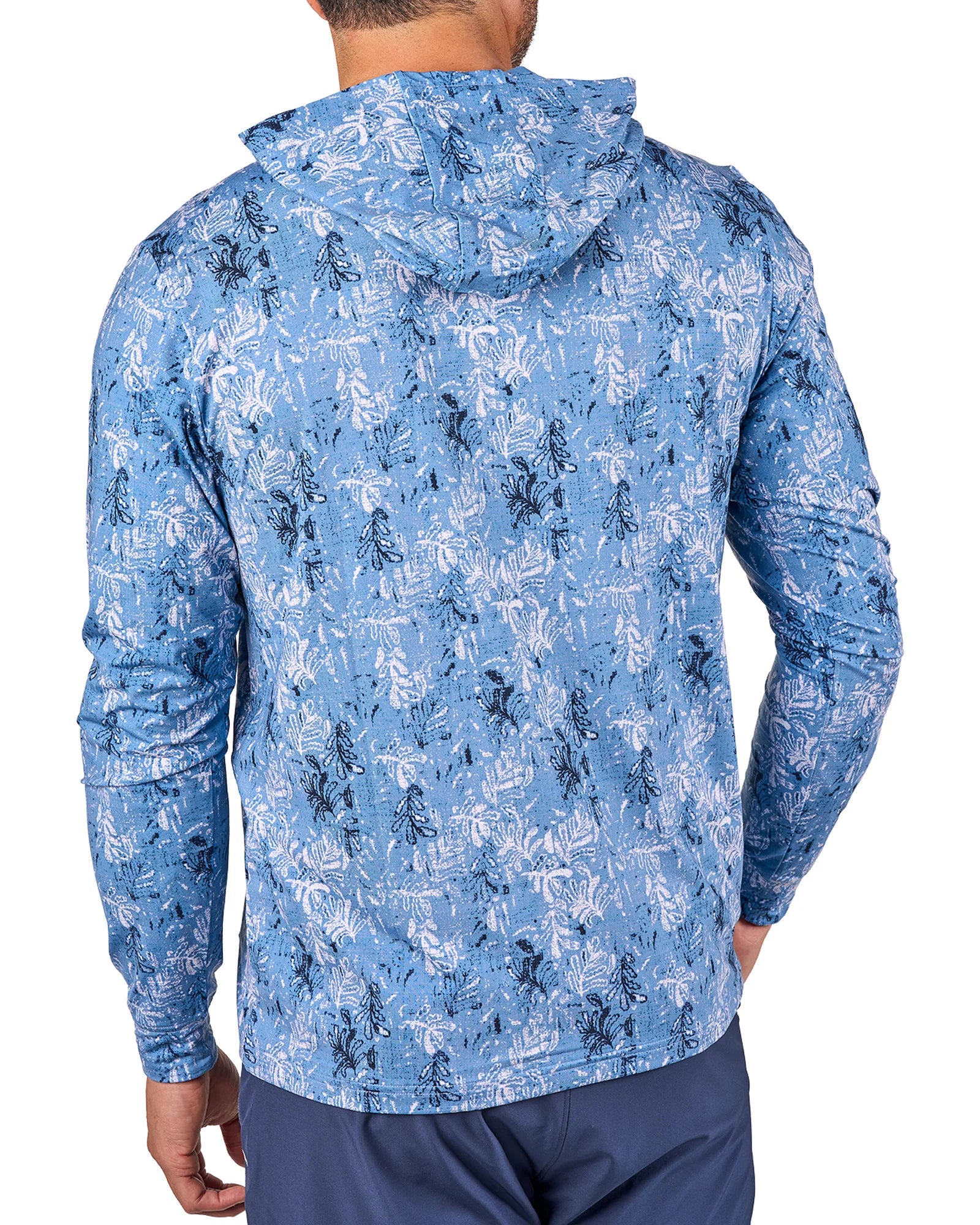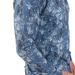 この軽量なパーカーは、ブルーとネイビーのプリントが特徴で、通気性に優れたポリスパンデックス混紡素材を使用しています。一日中快適に過ごせるようデザインされ、形状維持テクノロジー、抜群の柔らかさ、速乾性、しわになりにくい、お手入れのしやすさなど、スタイルと機能性が完璧に融合しています。
