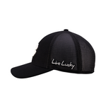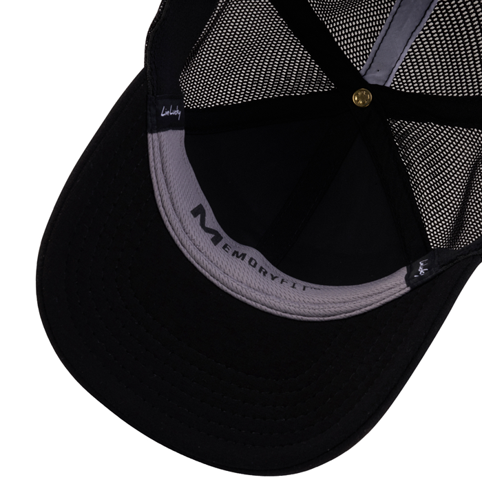 ブラックのフロントにブラックメッシュバックを組み合わせた、洗練されたオールブラックデザイン。フロントにはホワイトの3Dクローバー刺繍を配置し、シンプルながらも存在感のある仕上がりに。